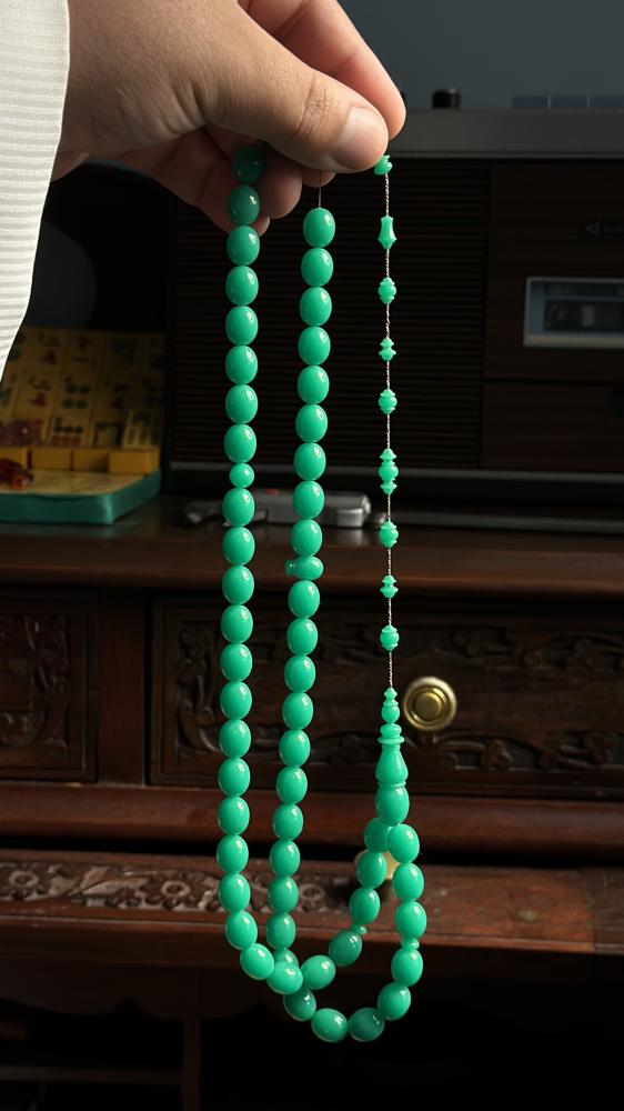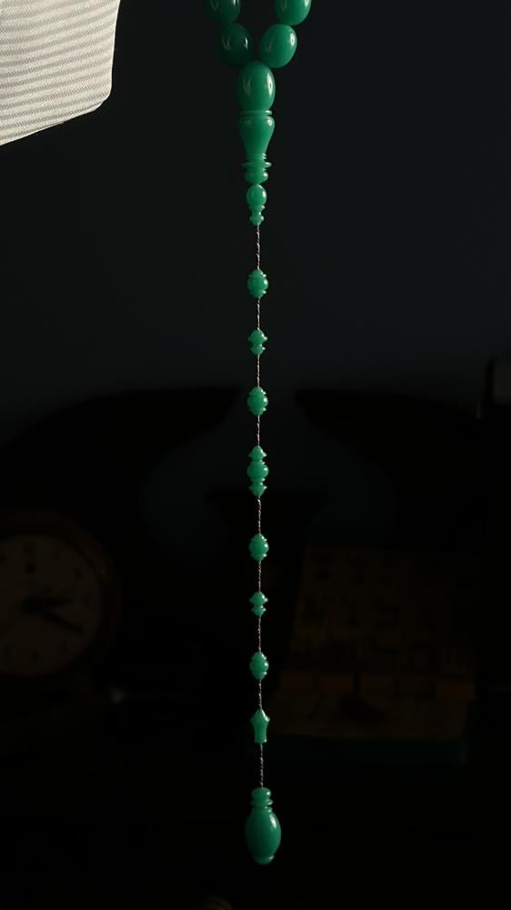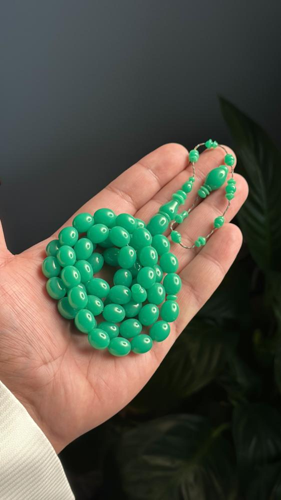 مسباح خام قديم بكلايت من عصي لون اخضر بطقم عربي حزوز جميلة بخراطة الاسطى يوسف الافندي