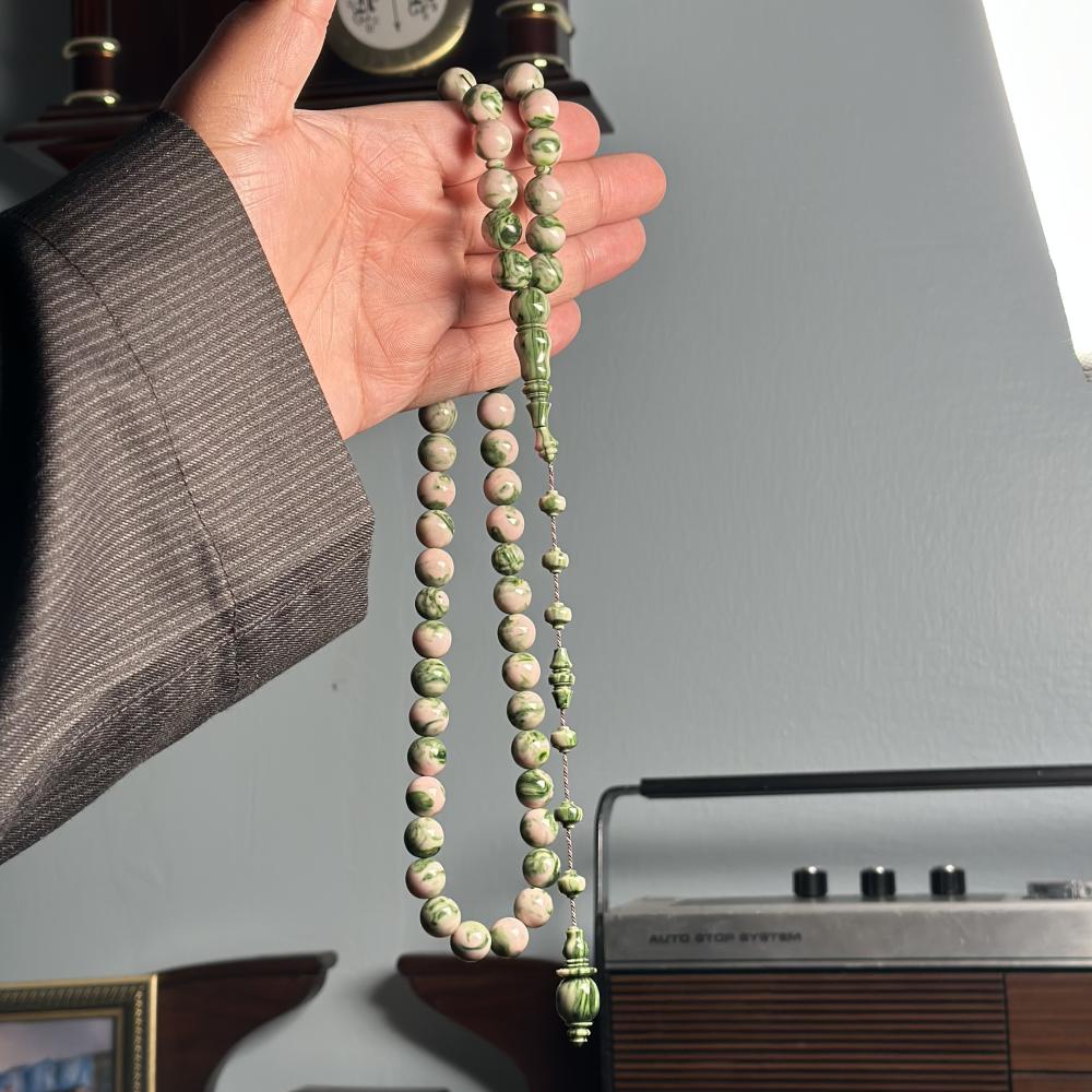 مسباح صب جديد فاتوران بلون اخضر عكروكي بفرزه فاتحة وغامقة بطقم عربي جميل بحزوز بخراطة الواحي